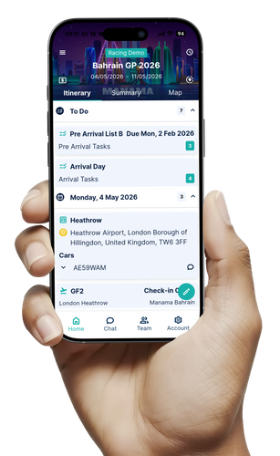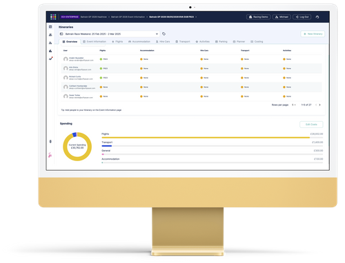 Simple travel planning - It’s never been easier to organise your team's travel arrangements, just add flights via the flight number to your team's itinerary, hire cars, buses, and any travel arrangements, can also be added in seconds.